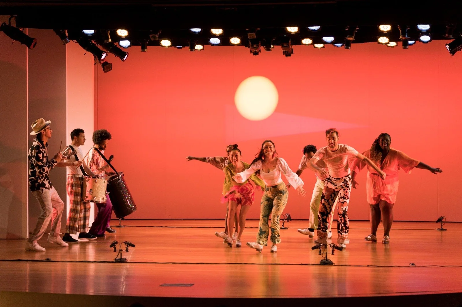 Tap, percussive dance, samba, house, and live music come together in I DIDN'T COME TO STAY, in which Brazilian tap dancer/choreographer Leonardo Sandoval and bassist/composer Gregory Richardson lead eight dancers and a five-piece band in a performance that explores tap's lineage and connections to other Afrodiasporic forms. Together the pair embrace shared roots across the diaspora and reflect on racial and cultural identity, while also celebrating the joy, strength, depth, and virtuosity of Black dance and music.